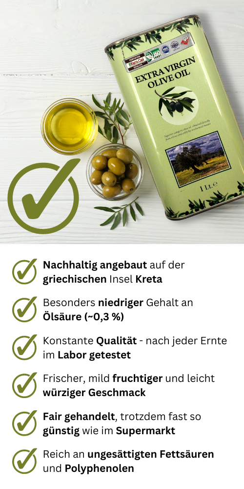 Der Bestseller-Autor Bas Kast bringt es in seinem Buch “Der Ernährungskompass” auf den Punkt: “Esst mehr gutes Olivenöl.”.